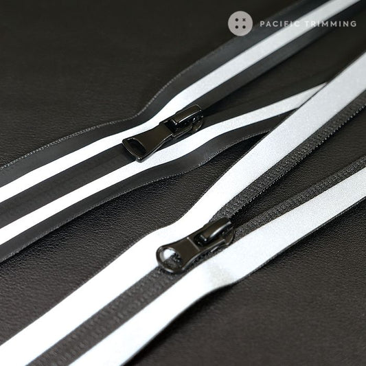 #7 Black & Silver Reflective Tape Water Repellent Nylon Coil Zipper